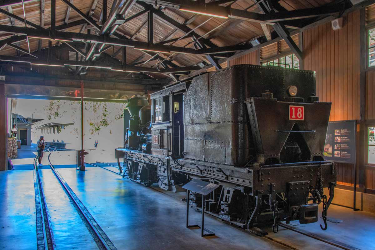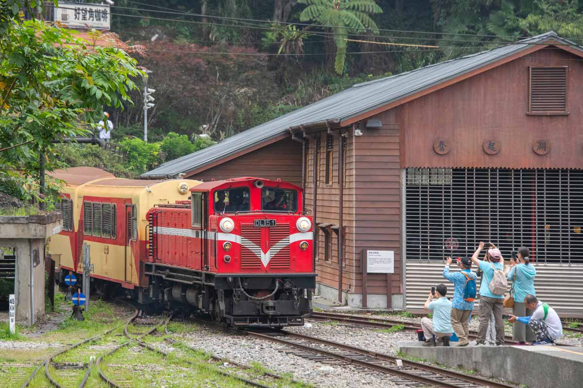 13:08になると、奮起湖駅に 試運転列車が下りてきました(51号機)。 隣に建つ車庫は、最近 再整備されました。 |