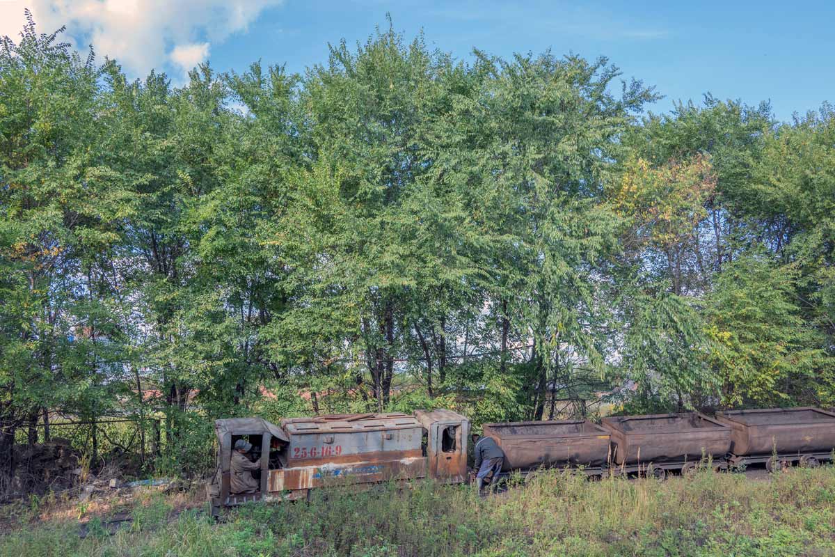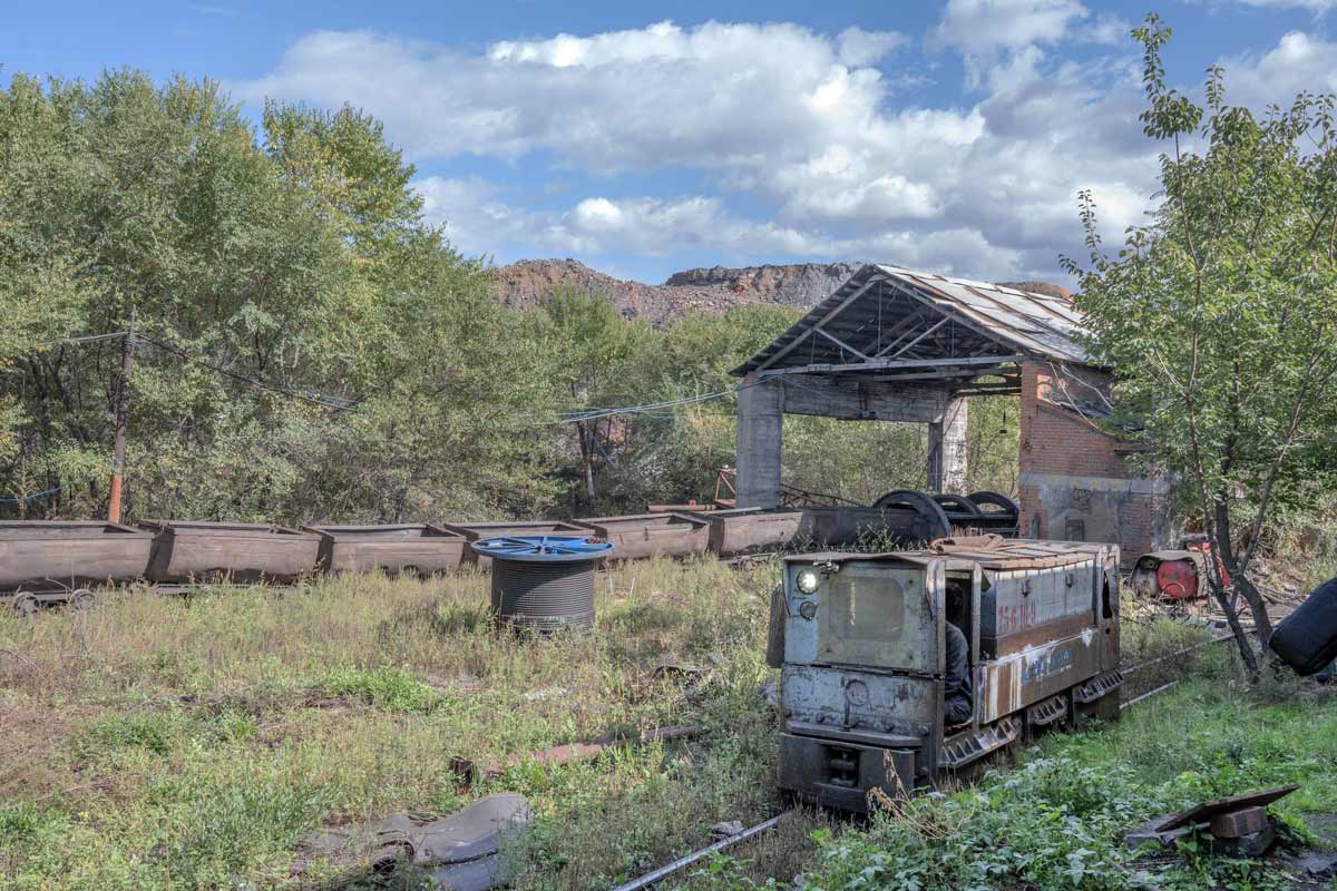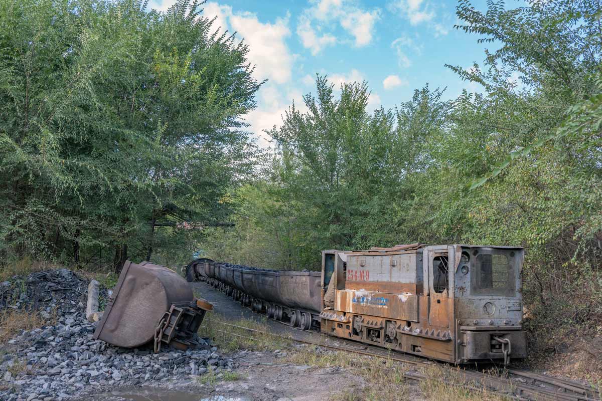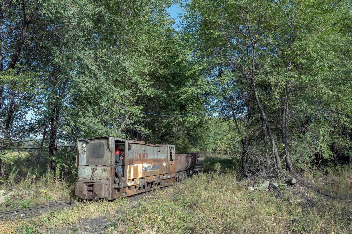 |  | 始めに 前回と同じく、生産エリアにあるヤードへ行こうとしたところ、前には無かった 真新しいゲートが設けられていて 中には 入れてもらえませんでした。 止むなく 電化区間での撮影は諦めることとし、タクシーで 迂回し 東側のズリ捨て場へ向かうことにしました。 こちらは 遮るゲートも無く 容易に近づくことができ、バッテリー機関車がライトを灯したまま 停車しているのが見えてきました。 これは 期待できそうです。 | |