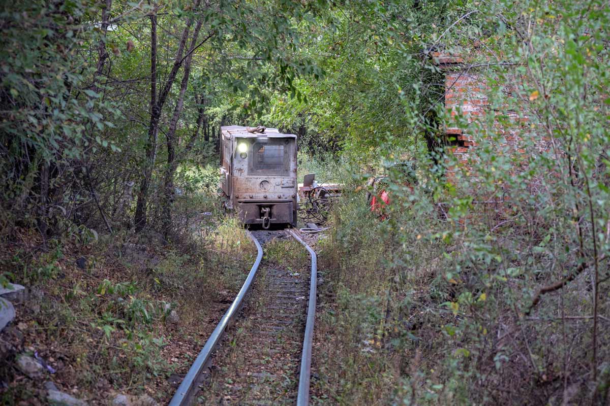|  | ズリトロッコを押し終えた機関車は、単機で 上の写真の地点へ 戻ってきました。 その後は 再び チップラー小屋の脇を抜けて 空トロッコの方へ向かいます。 | |