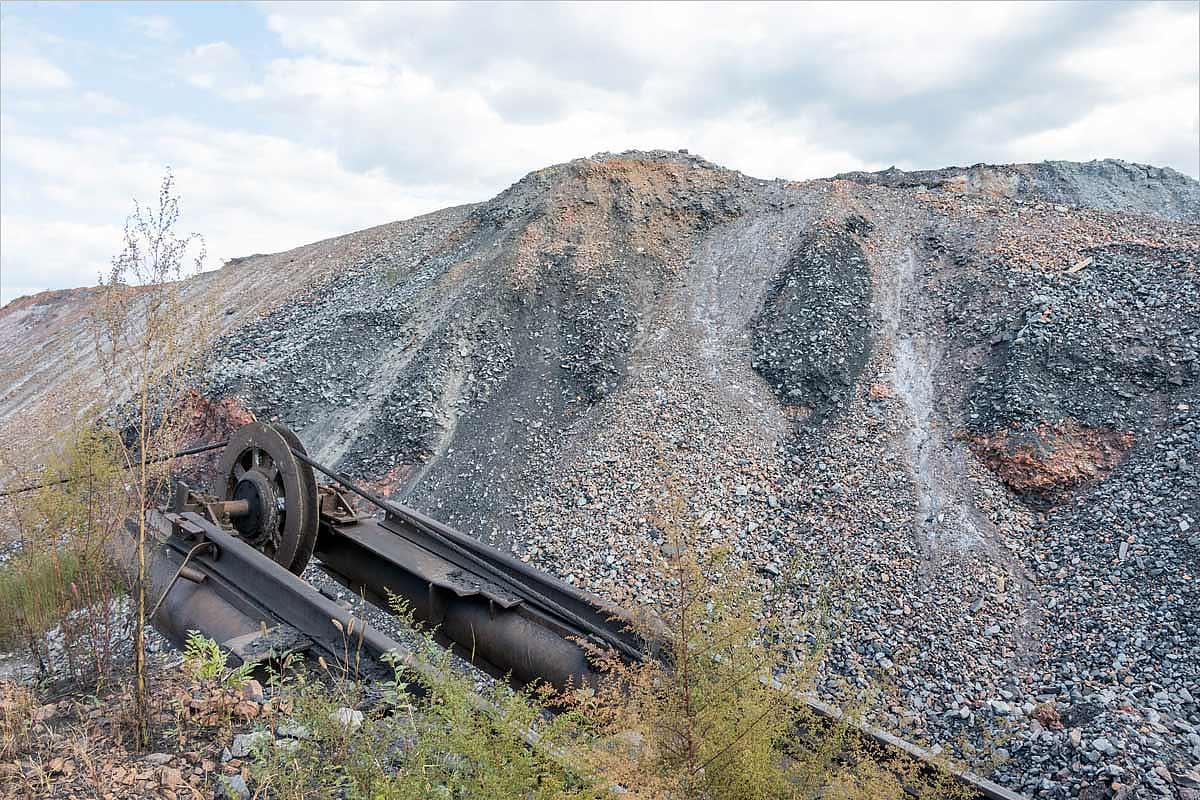 |  | こちらが 現在のインクラインの終点です。 隣には 別のボタ山が並んでいました。 向こうのヤマの方が 規模も大きく、トロッコではなくダンプカーでズリを運び込んでいるようです。 | |