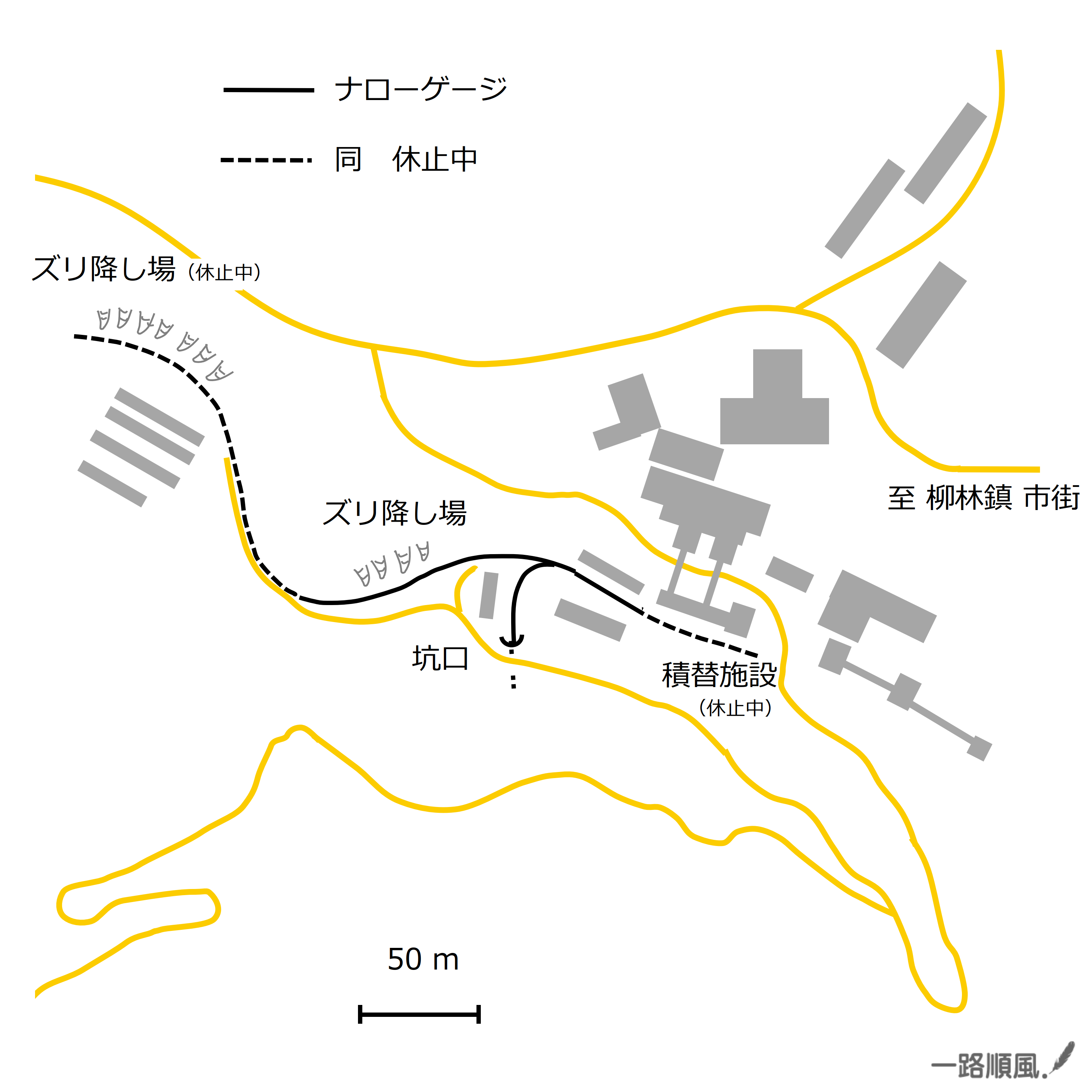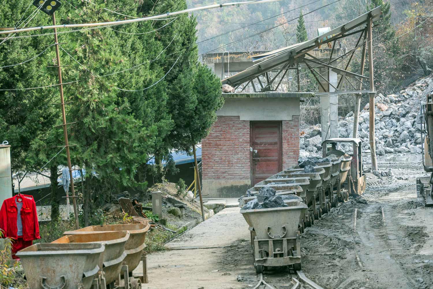 | 洛坝有色金属は 1990年に 設立された会社で、 徽県 柳林鎮 洛坝村周辺に 多くの非鉄金属砿山を保有しています。 そのうちのひとつ 天洛1150坑は、 隣の沙坝村にある砿山で、鉛や亜鉛を含む砿石を搬出してきました。 こちらで活躍しているのは 3 t クラス の小型のディーゼル機関車(軌間 600mm)です。 *2025年現在、施設・坑内の更新整備工事が行われており、採掘作業は中断しています(ズリのみ 搬出中)。 ・参考資料: ・所 在 地 : 33.93074989994626, 106.09132017312324(坑口) |